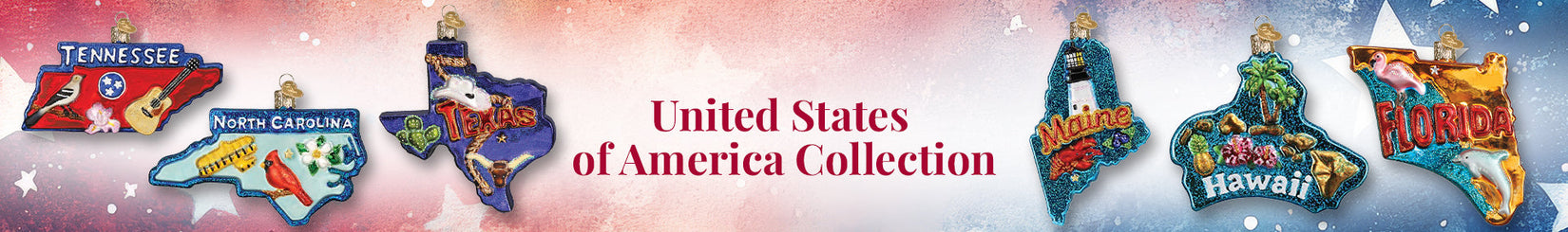 Show your state pride or mark your travels with Old World Christmas' ever growing United States of America ornaments. Each ornament is a celebration of the unique beauty and offerings of one of our treasured states.