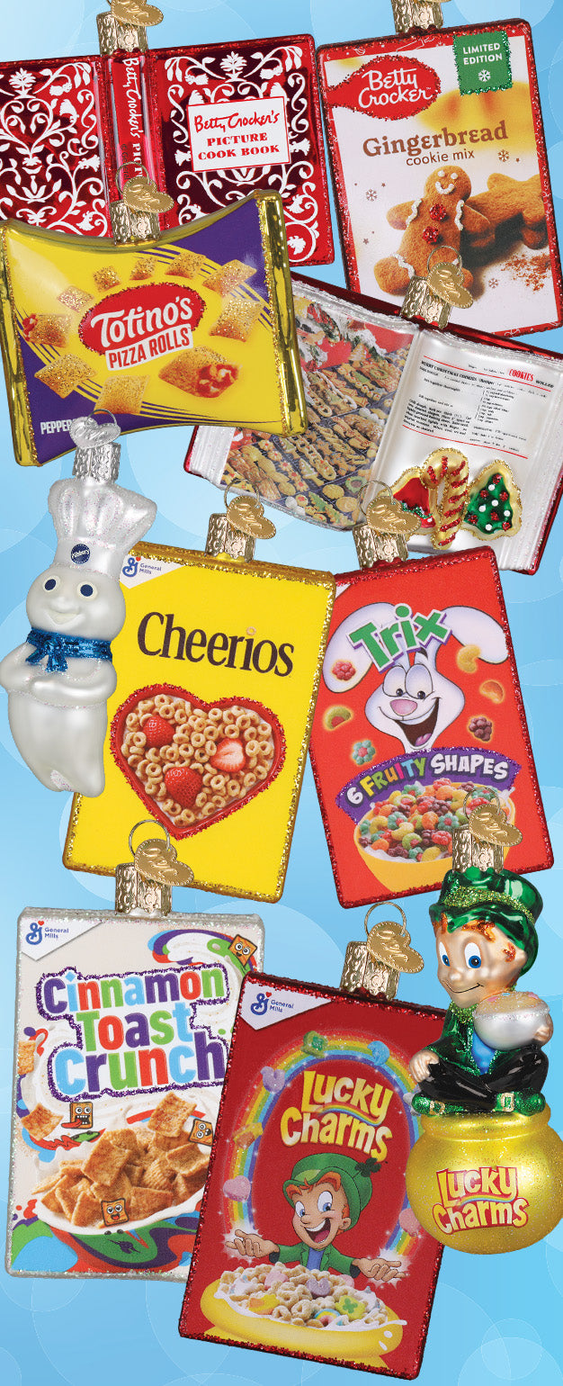 All your family memories around the kitchen table with General Mills iconic brands and characters come to life on your tree with Old World Christmas licensed ornaments.