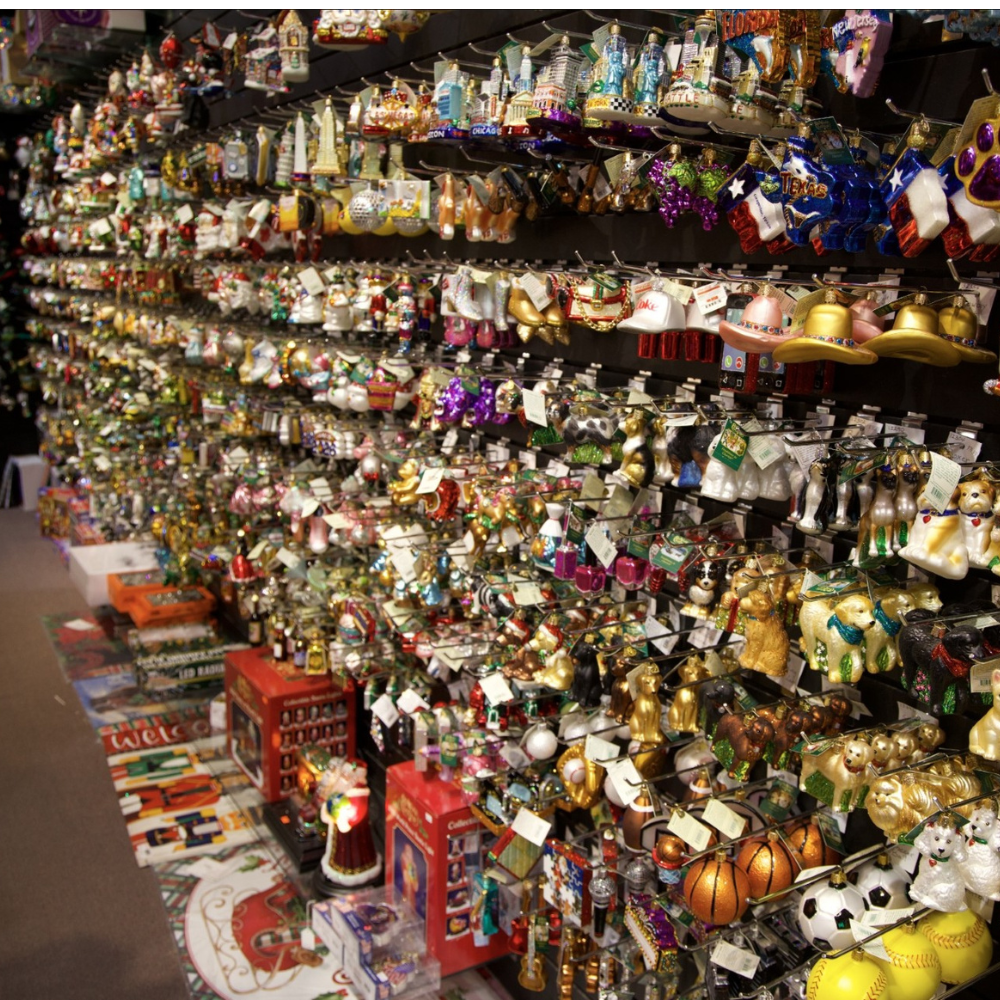 Tracey's Old World journey began in the early 2000s with a simple 4’ x 4’ display featuring a handful of carefully curated ornaments. Over the years, that small beginning has grown into an impressive 25’ x 6’ wall showcasing 800–900 ornaments and countless memories. Families from near and far have made it a tradition to visit each year and choose a special ornament for their children. Tracey especially loves watching little ones proudly bring their chosen ornament to the counter—and later, seeing those same children return as parents to continue the tradition. The charm, quality, and timeless elegance of Old World ornaments align beautifully with the store’s standards, making it a line they invest in with confidence, knowing customers appreciate the character just as much.