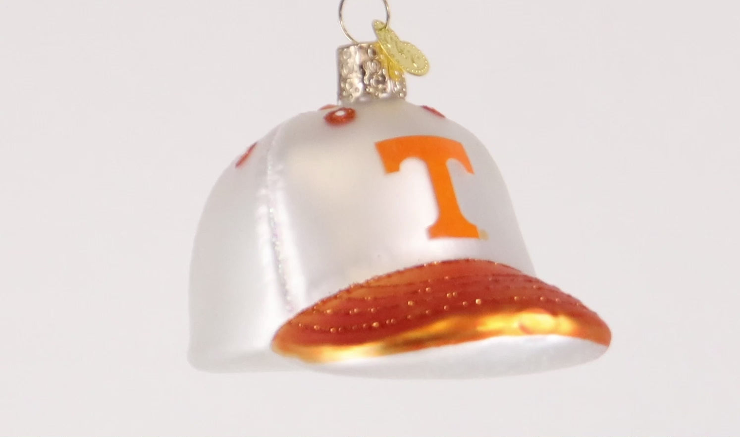 Old World Christmas Betty Crocker Cookbook glass ornament hanging on a Christmas tree, designed as an open cookbook with a holiday cookie recipe and decorated cookies on the pages.